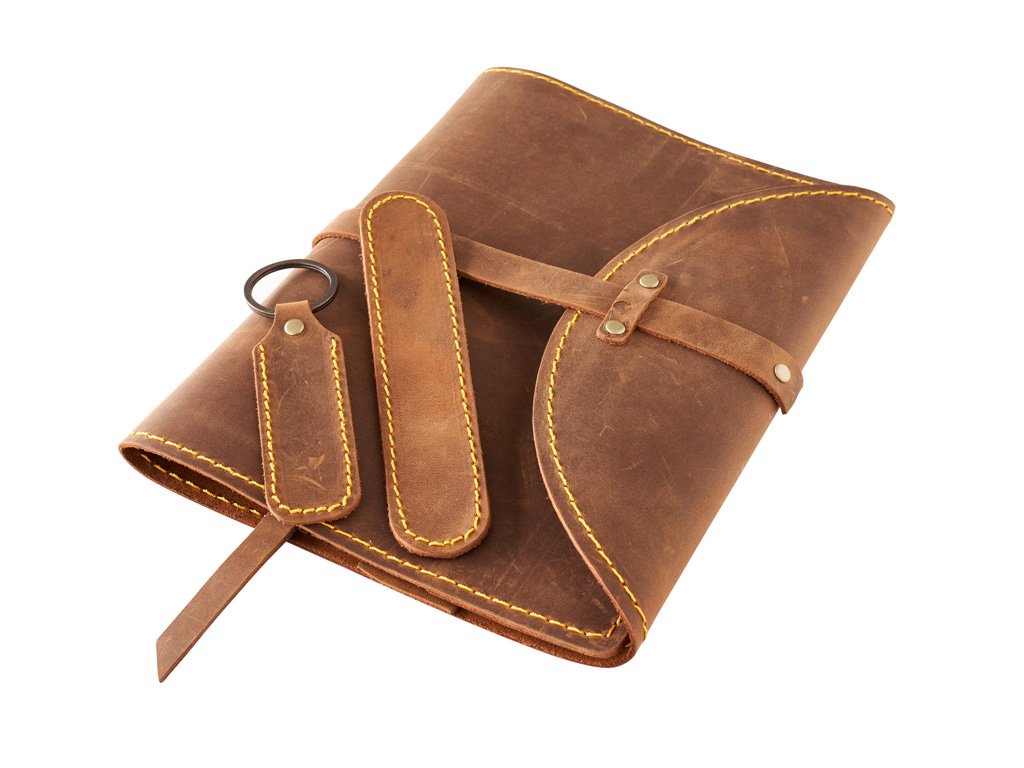 › Kožené obaly › Kožené obaly na knihy › Set záložka, klíčenka, obal s nýty XL